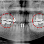治療前 初診のレントゲンです。 向かって左下の歯は根が割れてしまい根の周囲が黒く ...